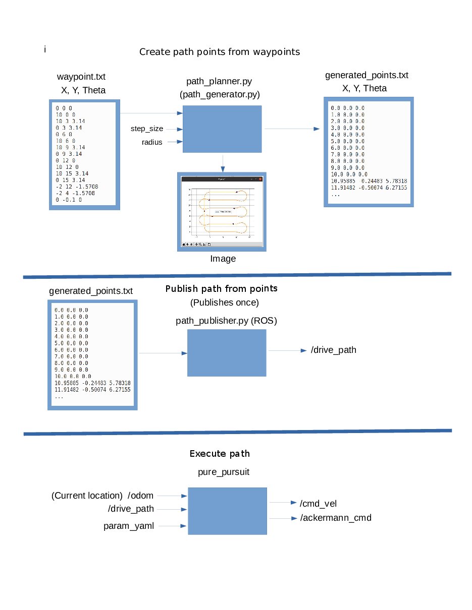 Waypoint Publisher This will read waypoints from a file and send them to ... (movebase_flex?) to drive a path. This consists of two python scripts and a text file containing a list of waypoints.