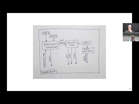 *Thread Reply:* Hey, this a perfect time to use my video index I am creating: 12052020 Lawn tractor meeting https://www.youtube.com/watch?v=lTqUMAUM1cc 00:00 Juan discusses documentation 12:30 Al talking about adding satellite image to RVIZ. 15:20 Johanthan announces a video presentation 20:20 Doug has a new Oculus Quest 2 headset. Mentions microcontrollers. 23:55 Matt asks if people are having problems with Docker networking. Lots of discussion about Docker and the simulator. 41:10 Al requests a model for an Ackermann vehicle. 45:50 Jeff asks about Matt's drone.