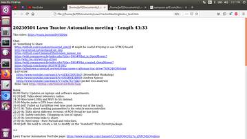 20240222 Lawn Tractor Automation meeting - Length 25:15 This video: https://youtu.be/3h2PgnOv7rY