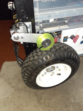 We were talking in the meeting about wheel encoders. The original Greenzie attempt used encoder wheels. I just ordered two of these brackets: https://www.amazon.com/dp/B083FQXLHB/ref=pe_386300_440135490_TE_simp_item_image And two 68mm encoder wheels: https://www.amazon.com/dp/B09CKYK4SR/ref=pe_386300_440135490_TE_simp_item_image?th=1 I already have 600 line encoders that I can use. It looks like I can bolt the bracket to the fender of my lawn tractor and let the encoder hang down and rub on top of the tire.