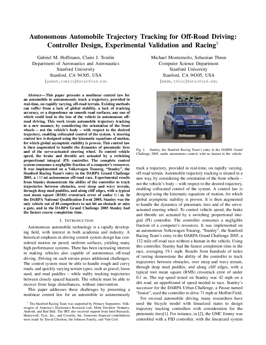 Index: 00:00 Jeff: Talks about his new garage door and opener. 07:05 Al: Talks about progress on path planning. Some discussion on speed control. 09:00 Jeff: Asks if there are any plots of the vehicle speed vs. ground contour. 13:05 Al: Now has problems with steering control. 19:55 Some discussion about the mouse chewing through the wires. 20:50 The original sensor problem (last week) turned out to be a microcontroller reset problem. 25:00 Al: Added some extra debug display messages. 25:55 Al: Has added time and date to his Linux "history" display.