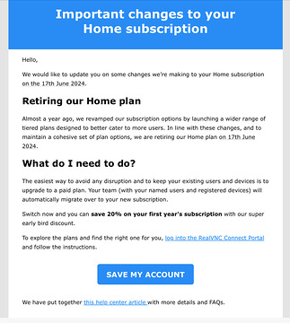 Looks like even the free legacy stuff is going away. Any one using a different FREE vnc?
