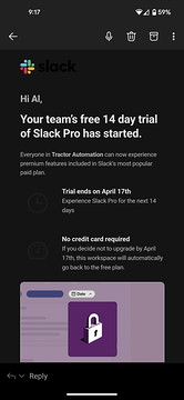 @channel I just got an offer for a 14-day free trial of the Slack pro plan. I accepted it. So everyone has full access for 14 days. I also ran a full backup and downloaded it to my computer. I should be able to use the convertor program I used before and maybe we will have all the data back to day one.