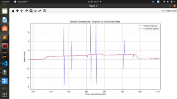 Working on filtering my speed data coming from my AS5048B magnetic rotation sensor which is connected to my rear wheels and used to calculate speed. In one field test 19 records out of 4482 (i.e. about 0.05%) were illogical. An example is these 5 readings: 14077, 14834, 15624, 6563, 810. Instead of 6563 the logical reading would be close to ~10 which would be a movement of ~770 ticks. So the corrected readings would be: 14077, 14834, 15624, 10, 810 where the movement from 15624 to 10 is the roll over event. Like I mentioned, 99.95% of the roll over events seem to work fine. I'm still not ready for more field testing, but I think I have the logic worked out to filter out the errors.