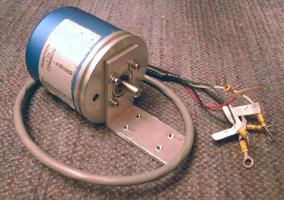 This encoder will be connected directly to the end of the motor shaft. I found an adapter that was threaded to screw onto a 1/2" bolt. It had a 1/4" hex hole punched in the end. I had Alan cut the threads out with his lathe so it slipped on the motor shaft. I inserted a hex stand-off into the hex hole. I cut a piece of rubber hose to couple the hex stand-off to the encoder shaft. The encoders are then bolted down to the wooden base.