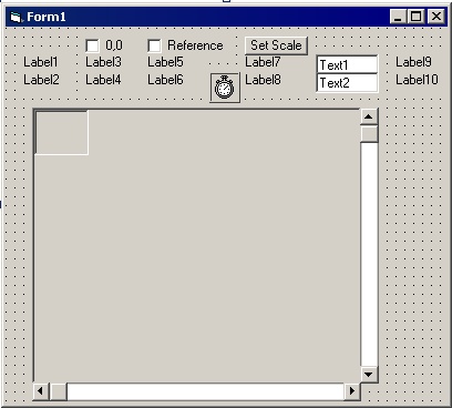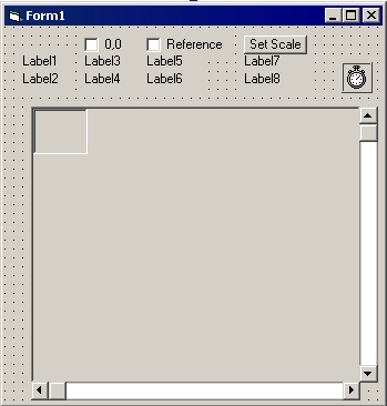So at this point I will add "Set Scale" button. It will subtract the values as mentioned above and put the results into labels 7 and 8. (Notice I cheated and let VB do all the conversion as I subtract text fields. :-)