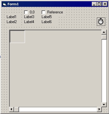 I start VB 6 and create a new project. Place a rather large Picture Box control on your form. This will be your view port. Then place another Picture Box control inside of the first one. Put it in the upper left hand corner. So it will look like this: