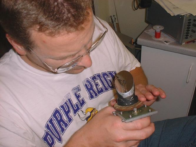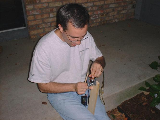 Brynn brought a car project. Ron brought his new model airplane gas engine to play with.