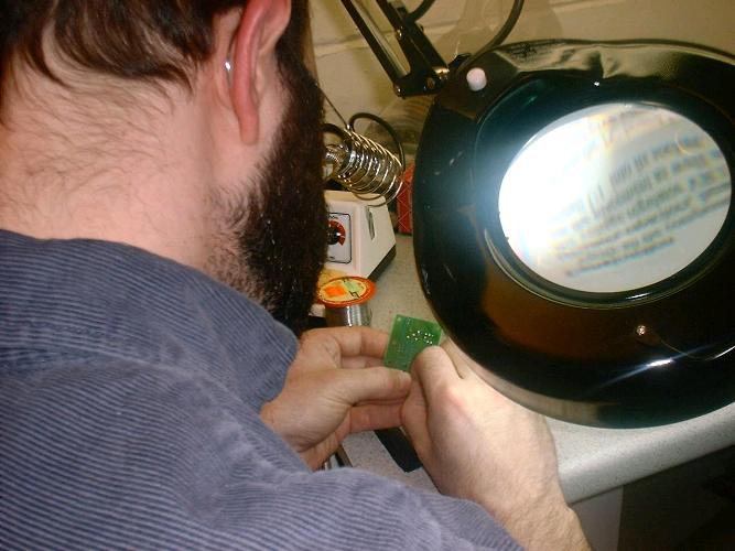 ![]() Jeff is desoldering the flexible PC board from the back of the CCD. |