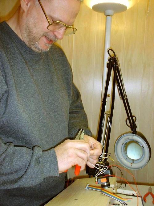 ![]() Jeff is making a custom cable to connect to the Pitman motors. |