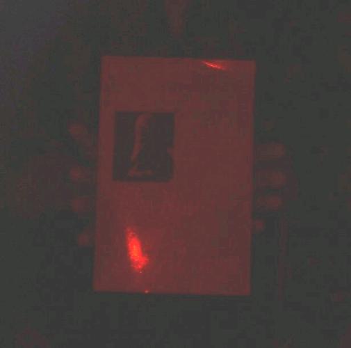 Brynn bought some high precision red color filters. If I remember right these are tuned to the color of a helium neon laser. So we had to look at everything through these filters to see how it looked. The reasoning is that these can be used to pass laser light and block the ambient light. But you can see from the pictures that white light goes through also.