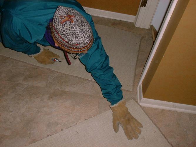 ![]() Brynn cut some carpet to protect the floor. You may notice that it was REAL cold that day. |