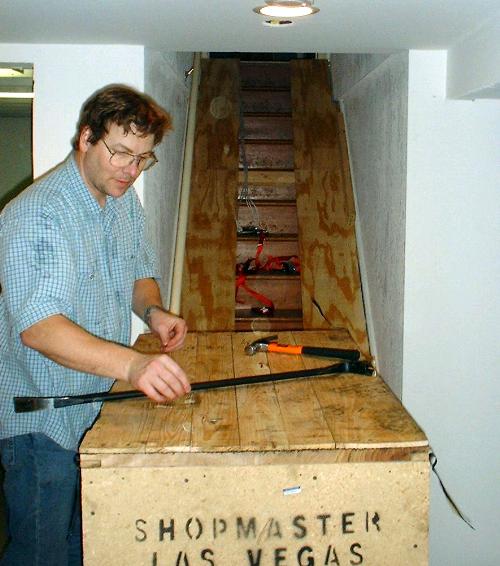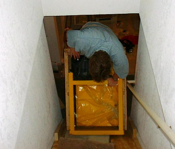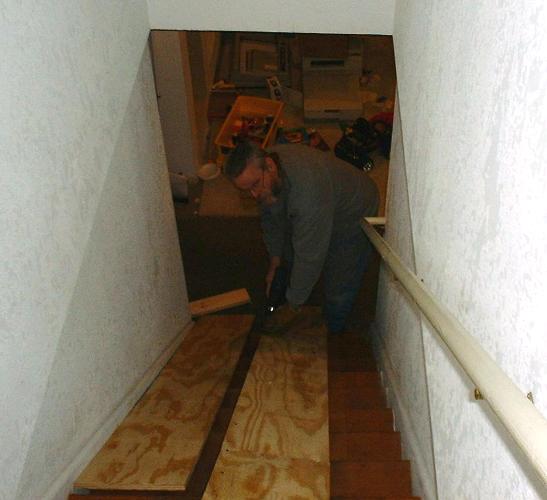 ![]() Jeff screwed down plywood to the stairs for the mill to slide on. |