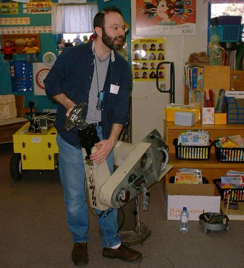 ![]() Alan manually maipulating his Puma robot. You can see Oscar, Trippy and the Earth Exploere in the backgound. |