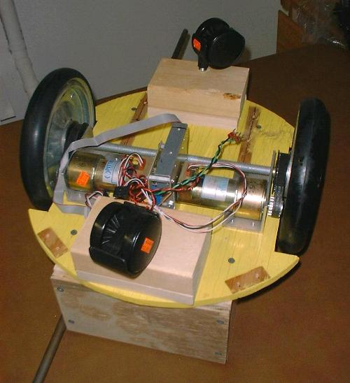 ![]() The wheel is driven from a Pittman gear motor through a belt. |