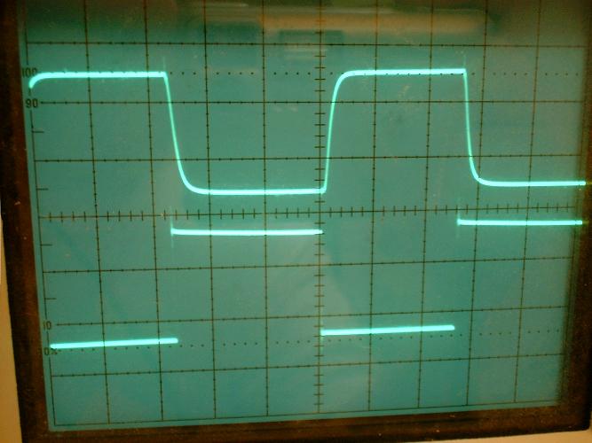 ![]() The bottom trace is the TTL input. The top trace is the output of the NEC 2504 opto isolator. These are much faster than the 4N36 parts. |