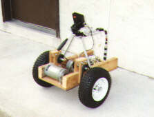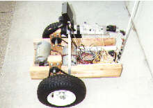 So, I might as well add another battery. I wired up another 12V ni-cad to give me a total of 24V. It was REAL peppy now! It didn't even think about slowing down in the grass. And it ran well on the sidewalk. So I ran it up and down the side walk a few times. It was coming back down the side walk at full speed when... it came to an abrupt halt and flipped over on it's top. I may add, that was quite a surprise!